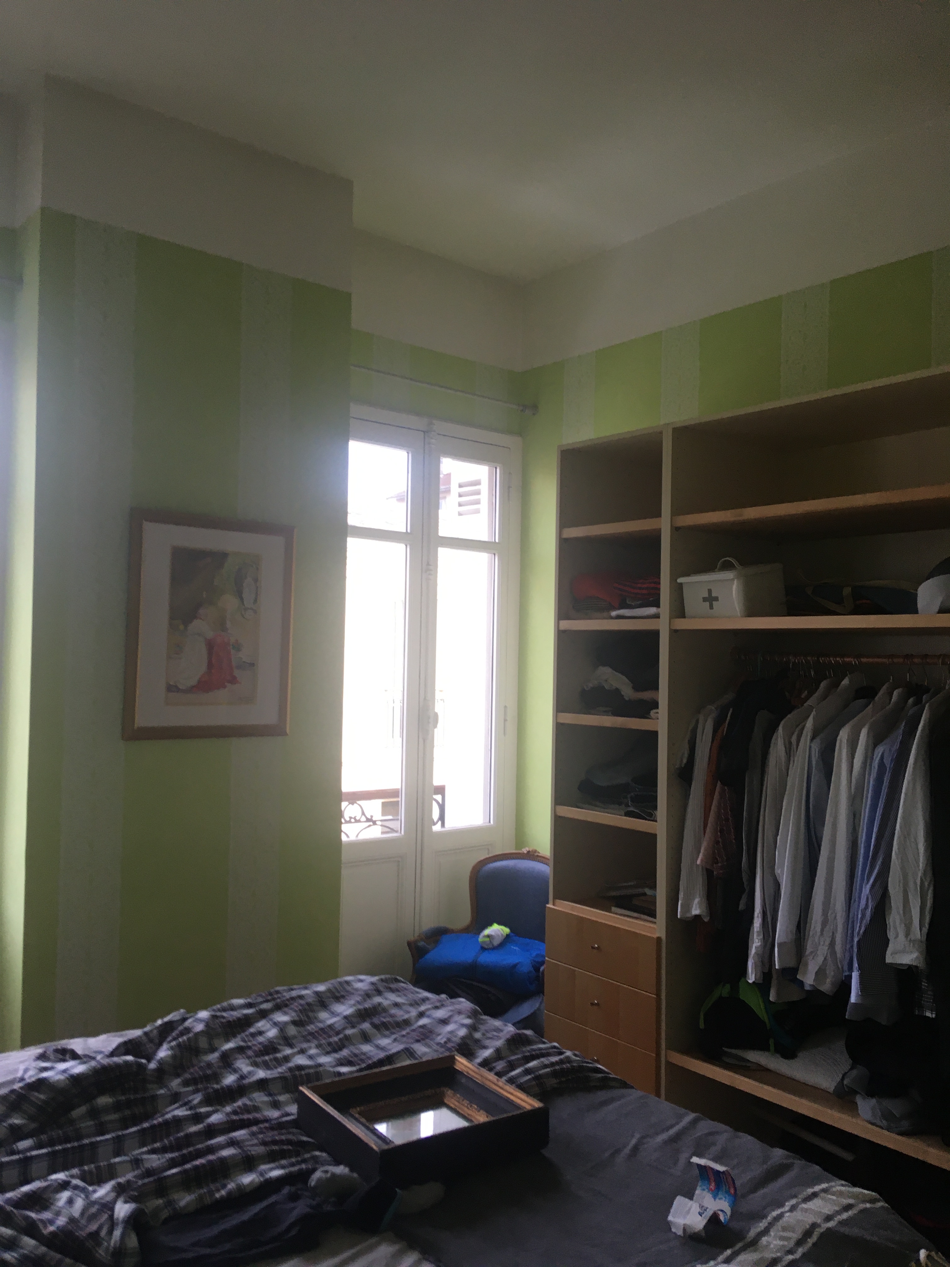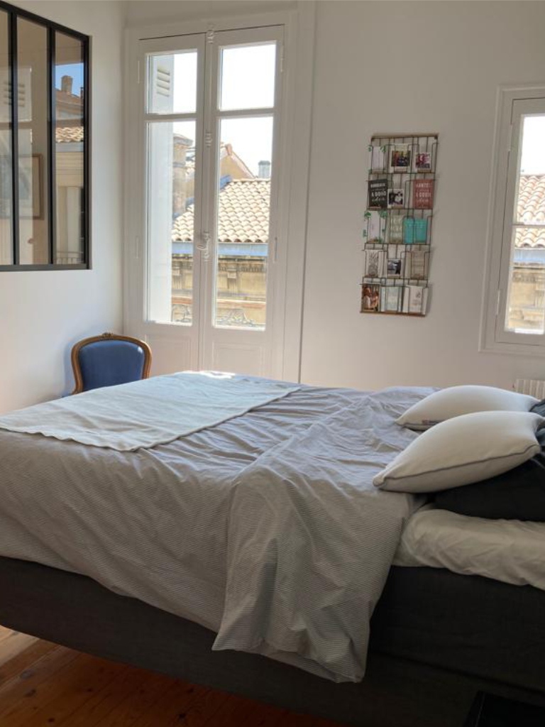 L’espace des parents a été repensé pour être plus spacieux et lumineux. En effet, le bureau du père disposait d’une petite fenêtre rendant cette pièce sombre et exiguë. Il a été proposé, ici aussi, de déposer la paroi entre ce bureau et la chambre parentale pour faire une seule grande pièce. L’espace nuit et le bureau sont séparées par une cloison vitrée. Un grand linéaire de placards pour ranger les vêtements es prévu ainsi que des longues étagères pour ranger des livres côté chambre et des dossiers côté bureau.