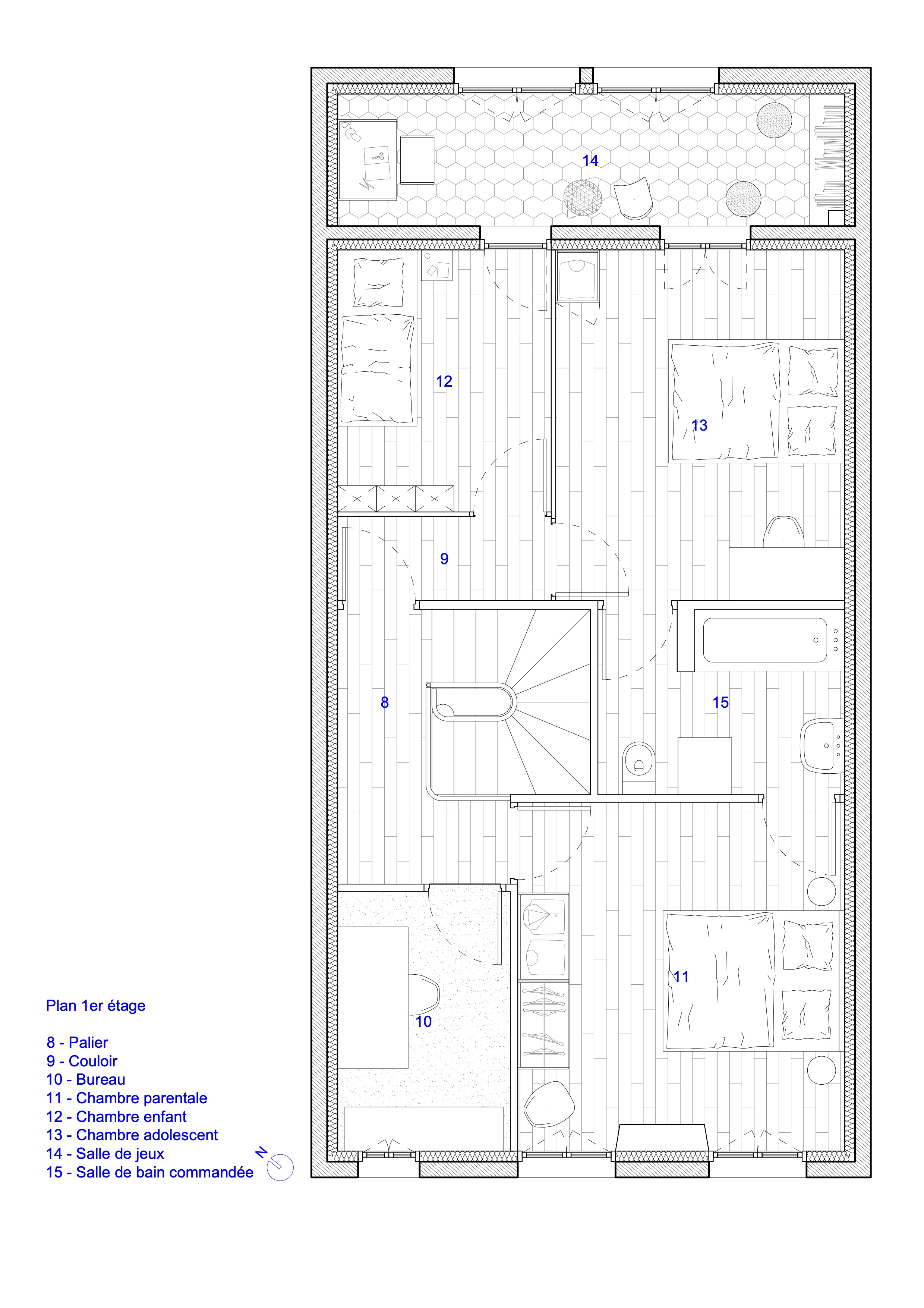 Mission : conception – Client : Couple avec des enfants – Superficie : 114 m² Durée des études : 1 mois