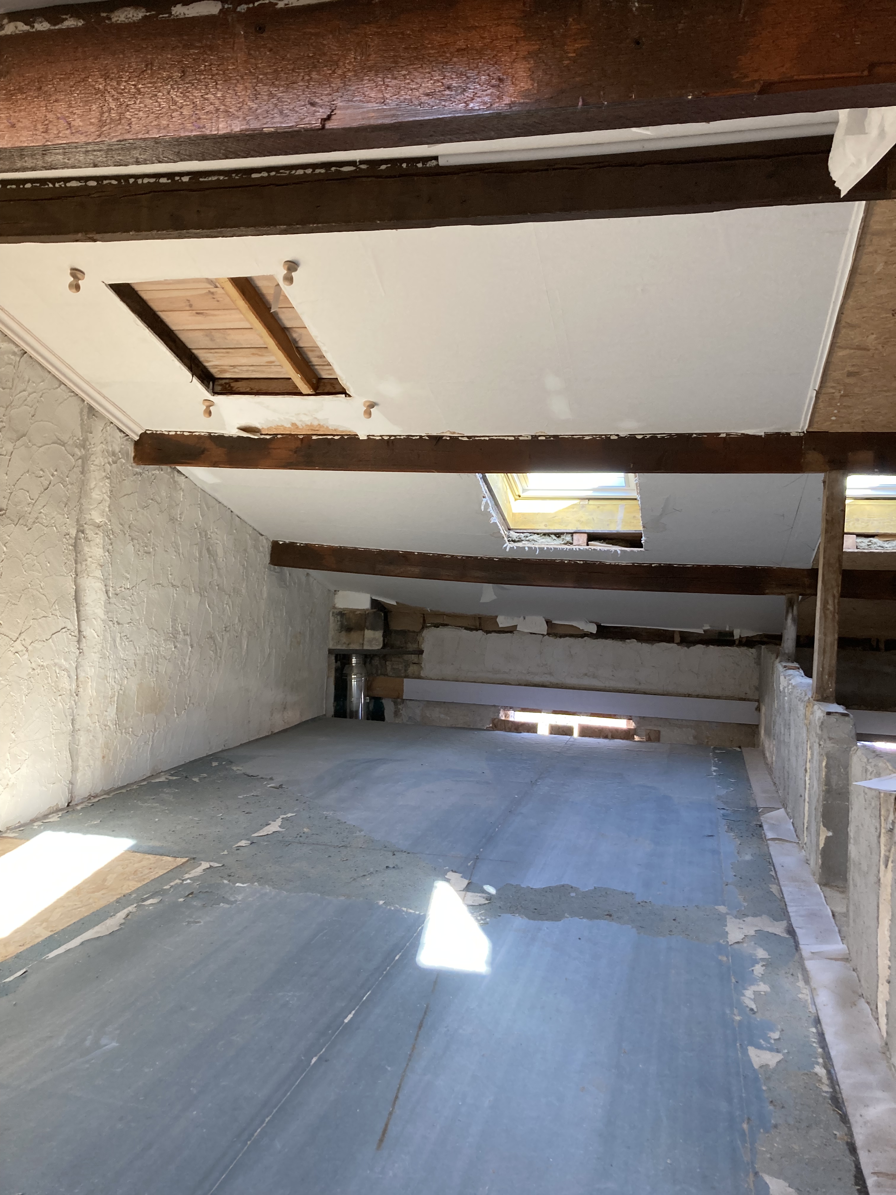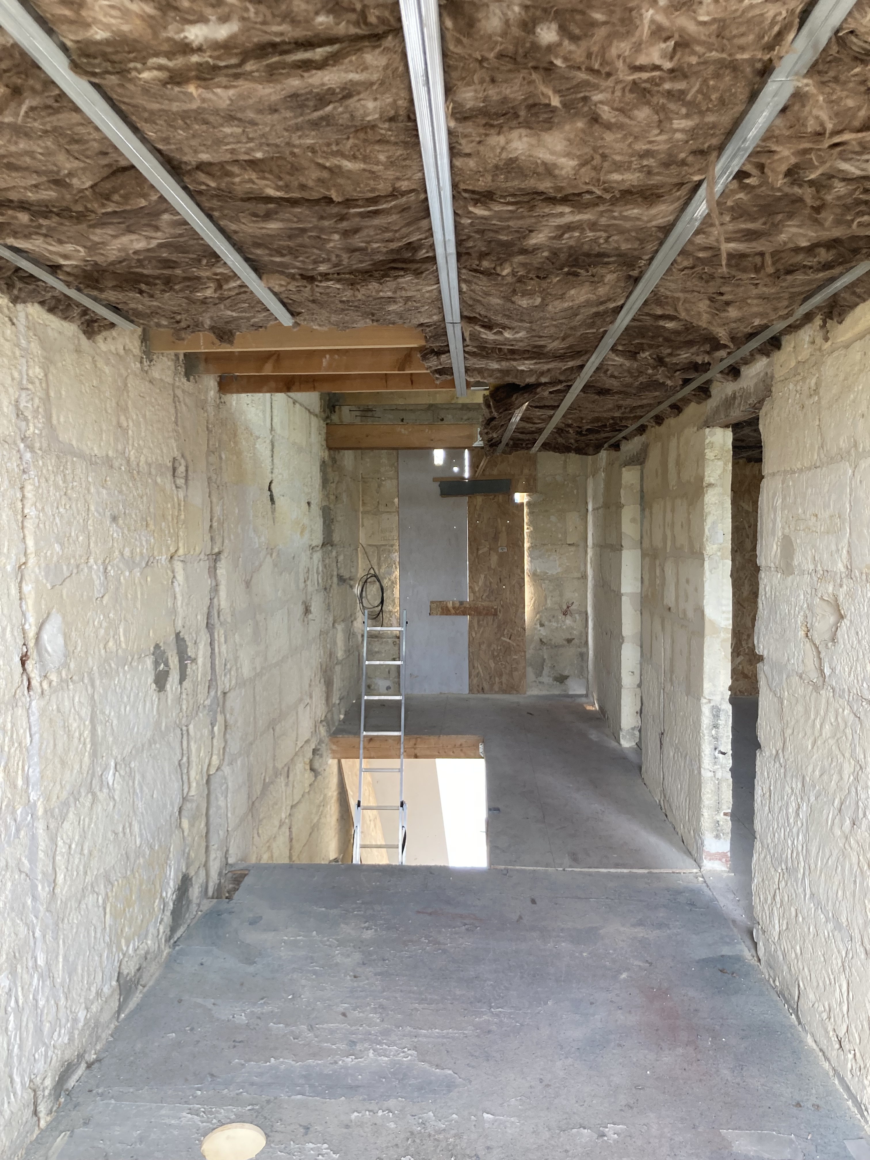 Rares sont les projets qui commencent comme celui-ci ! En effet, lors de leur première visite, le couple découvre la maison, dont les travaux sont selon l’annonce « à terminer », en restant moins de 5 minutes et sans se parler. Ils ont été trop surpris par l’ampleur du travail restant à faire et à refaire : la maison n’avait pas d’isolation, le plan électrique consistait en une succession de multiprises branchées les unes aux autres, les sols et les murs étaient recouverts de planches OSB, la cuisine semblait provisoire, la salle de bain présentait la même qualité de prestation que celle d’un mobile-home, le réseau d’eau et d’évacuation étaient quant à eux apparents. Tout à failli s’arrêter là…